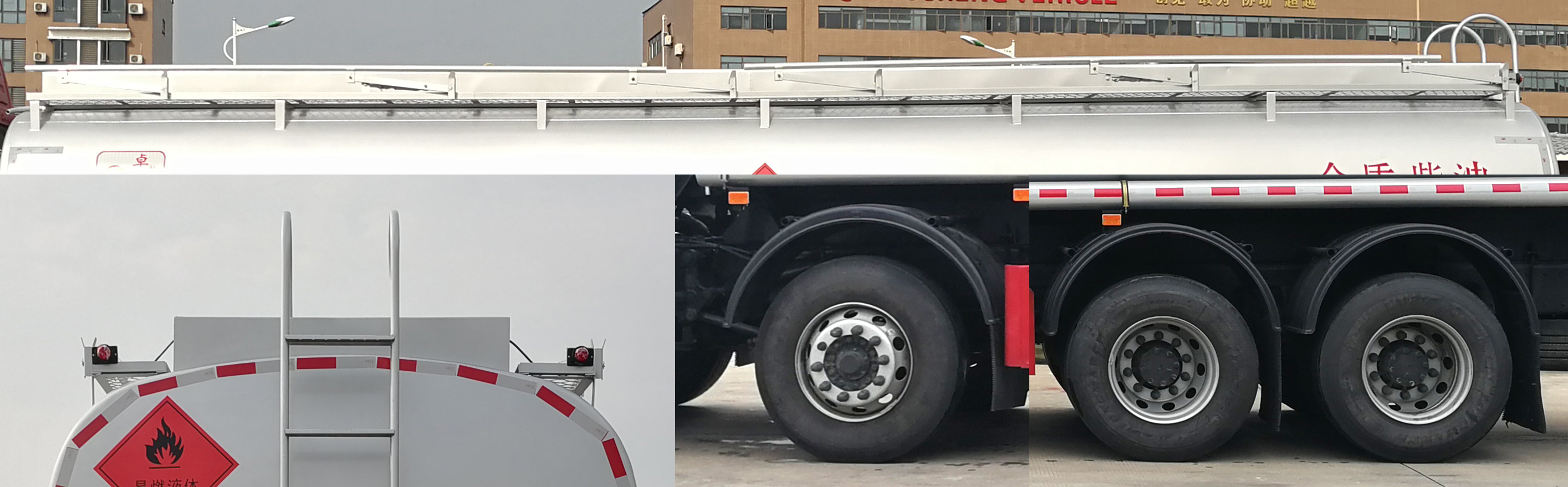 | 配置 | 該車為危險貨物運輸車,運送危險貨物車輛類型為:FL型,類項號:3。運輸介質(zhì):汽油,罐體有效容積27.5立方米,罐體外形尺寸(長×寬×高)(mm):8900×2300×1660。僅選用軸距(mm):1800+4575+1400。側(cè)、后防護材料均為Q235,螺栓連接,后防護截面尺寸(mm)80×140,下邊緣離地高460mm。隨底盤選裝駕駛室。僅選用排氣管前置、限速裝置(限速80km/h)、前輪盤式制動及子午線輪胎的底盤。轉(zhuǎn)向輪安裝輪胎爆胎應(yīng)急防護裝置。后軸采用空氣懸架。安裝帶有衛(wèi)星定位功能的行駛記錄儀。EBS**系統(tǒng)型號/生產(chǎn)廠家:EBS3/威伯科(上海)管理有限公司。發(fā)動機/油耗值(L/100km)對應(yīng)關(guān)系為:MC07.31-60/38.0,MC07.34-60/38.0,MC09.35-60/38.2,MC09.38-60/38.2,MC09.35B-60/38.2,MC07.33-60/38.0,MC07H.33-60/37.44,MC07H.35-60/37.44,MC11.40-60/37.3,MC11.44-60/37.3,MC11.40-61/37.3,MC11.43-61/37.3,WP8.350E61/38.04。選裝ETC。罐體上部選裝上走道,**軸及驅(qū)動軸選裝弧形擋泥板。 | ||
