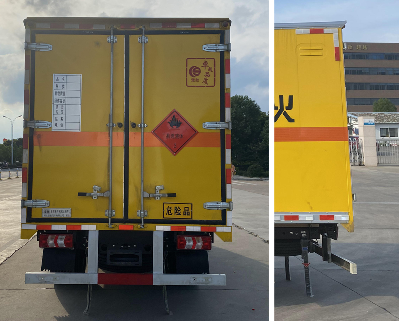 1、該車適用于運(yùn)輸危險(xiǎn)品。廂體頂部封閉,不可開啟。類項(xiàng)號:2.1,2.2。2、側(cè),后防護(hù)材料均為Q235,螺栓連接;后防護(hù)截面尺寸φ100mm,下邊緣離地高450mm。選裝后部無尾板,選裝無尾板時(shí),后防護(hù)材料為Q235,焊接,截面尺寸100×50mm,下邊緣離地高450mm。3、廂體側(cè)面選裝開門型式及位置,選裝不帶側(cè)開門,選裝瓦楞板結(jié)構(gòu);廂體側(cè)面板選裝開百葉窗。安裝帶有衛(wèi)星定位功能的行駛記錄。轉(zhuǎn)向輪安裝輪胎防爆應(yīng)急防護(hù)裝置。僅選用排氣管前置、限速裝置(限速80km/h)、前輪盤式制動(dòng)及子午線輪胎的底盤..ABS型號/廠家為:CM4XL-4S/4M /廣州瑞立科密汽車電子股份有限公司,ABS型號/廠家:VIE ABS-Ⅱ/浙江萬安科技股份有限公司。發(fā)動(dòng)機(jī)/油耗值(L/100Km)對應(yīng)關(guān)系為:WP2.3NQ130E61/10.83。該車型可選裝ETC車載裝置。液壓升降尾板收起狀態(tài)水平長度為280mm,尾板質(zhì)量為350kg。 |