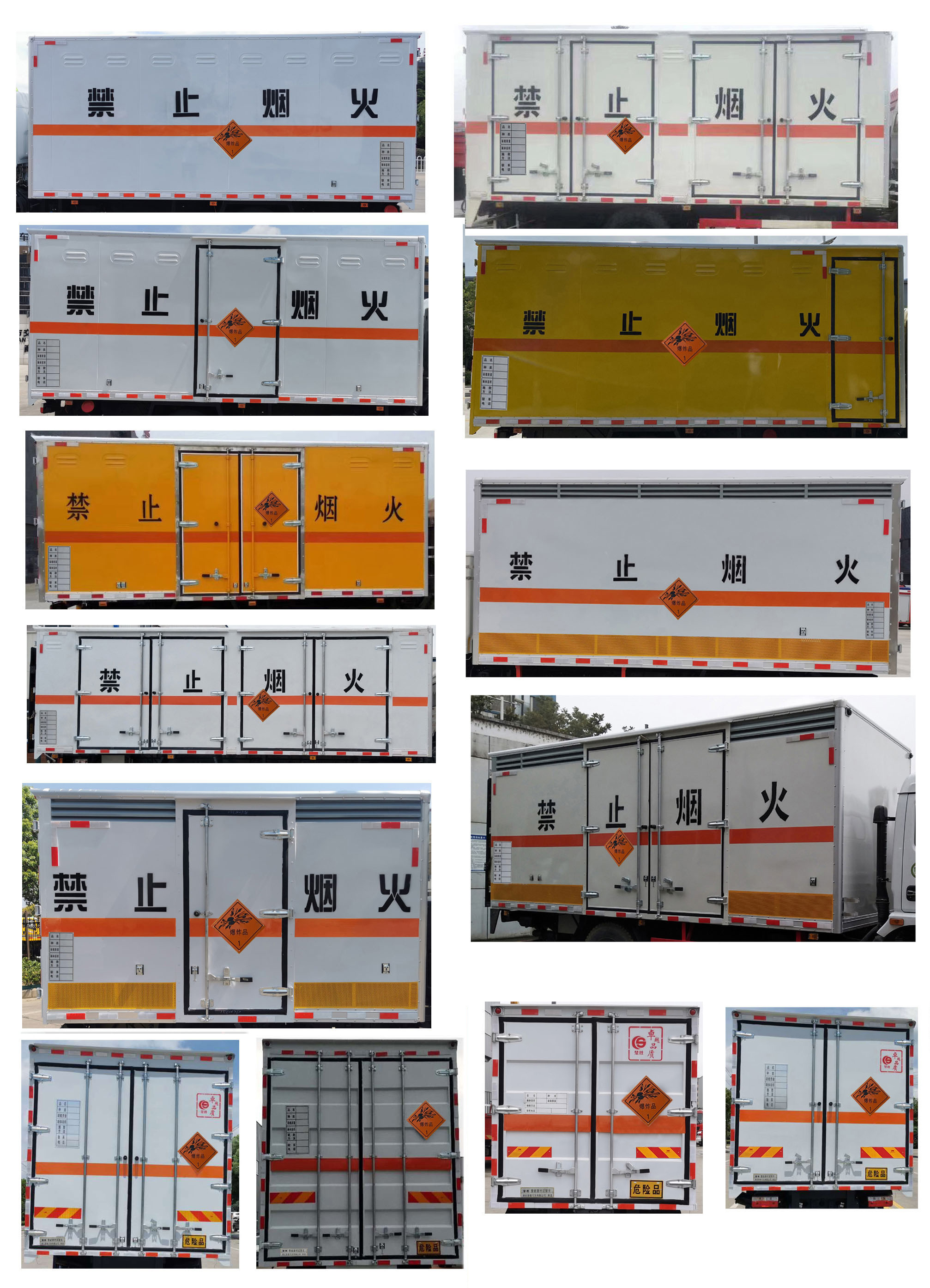 配置  1、該車適用于運(yùn)輸危險(xiǎn)品。運(yùn)輸具有**容器(瓶)包裝的物品,EX/Ⅲ型車輛,危險(xiǎn)貨物類項(xiàng)號(hào):1.1B,1.1G,1.3C,1.1D,1.2D,1.3C,1.1C,1.4G。廂體頂部封閉不可開啟。2、側(cè)/后防護(hù)材料為Q235,側(cè)防護(hù)螺栓連接,后防護(hù)焊接,截面尺寸(mm)120×50,下邊緣離地高490mm。3、隨底盤選裝駕駛室前面罩,選裝側(cè)窗玻璃;駕駛室頂部中間三個(gè)裝飾燈為選裝件;前霧燈為選裝件;駕駛室前臉擾流罩為選裝件。僅選用排氣管前置、限速裝置(限速80km/h)、前輪盤式制動(dòng)及子午線輪胎的底盤;轉(zhuǎn)向輪安裝輪胎爆胎應(yīng)急防護(hù)裝置。后軸采用空氣懸架。安裝帶有衛(wèi)星定位功能的行駛記錄儀,EBS型號(hào)/生產(chǎn)廠家:EBS3/威伯科(上海)管理有限公司。發(fā)動(dòng)機(jī)與油耗值(L/100Km)對(duì)應(yīng)關(guān)系為: B6.2NS6B210/26.5,DDi50E190-60/23.9。整車外形長(zhǎng)/軸距/前懸/后懸的對(duì)應(yīng)關(guān)系為(mm):8650/4700/1430/2520,9050/5000/1430/2620,9250/5000/1430/2820,10000/5800/1430/2770。4、該車型可選裝ETC車載裝置。廂體側(cè)面選裝開門型式及位置,選裝不帶側(cè)開門,選裝瓦楞板結(jié)構(gòu);廂體側(cè)面板選裝開百葉窗。