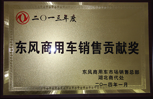 廈工楚勝獲得2013年東風(fēng)商用車銷售貢獻(xiàn)獎