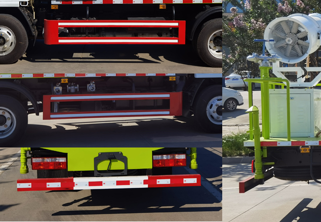 配置  1、專用裝置為抑塵裝置總成,用于城市抑塵,整車長/軸距/后懸對應(yīng)關(guān)系為(mm):5630/2950/1625,5995/3308/1632;2、側(cè),后防護(hù)材料均為Q235,側(cè)防護(hù)螺栓連接,后防護(hù)焊接,后防護(hù)截面尺寸100×50mm,下邊緣離地高450mm.3、隨底盤選裝駕駛室,ABS型號(hào)/廠家:ABS/ASR-12V-4S/4M/襄陽東風(fēng)隆誠機(jī)械有限責(zé)任公司。