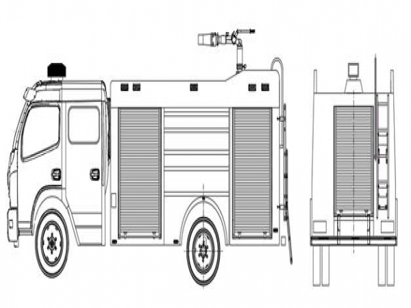 總體布置 | 整車由消防員乘員室和車身兩大部分組成,車身布置采用三分體式結(jié)構(gòu),前部為器材箱,中部為水罐,后部為水泵房,罐體為平行六面體廂式容罐。 |