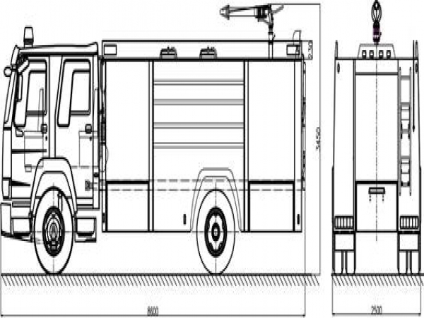 8噸消防車采用中國重汽濟南卡車有限公司ZZ5207TXFV471GF5型二類汽車底盤,原裝雙排駕駛室,乘員2+4人,該車駕乘舒適輕便。上裝采用外露式水罐,整車載液量為水7600kg。器材箱采用高質量鋁合金卷簾門。底盤取力,發(fā)動機型號為MC07.34-60,最大功率257kW,通過萬向聯軸器驅動安裝在汽車尾部泵房里的上海雄真CB20.10/30.60型中低壓消防泵,可在1.0MPa下穩(wěn)定輸出60L/s的流量;2.0MPa下穩(wěn)定輸出30L/s的流量;車頂安裝成都威斯特消防器材有限責任公司生產的PS8/60W型消防炮(水罐消防車),流量60L/s,對應壓力0.8MPa,最大承壓1.3MPa,射程75m,可360°旋轉。同時該車具有比功率大、綜合性能強、操控集中簡便等特點。